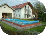 Das 4m x 10m große, solarbeheiztes Schwimmbecken ermöglicht ein ausgiebiges Schwimmtraining.